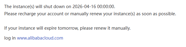 「The instance(s) will shut down on 2026-04-16 00:00:00.」